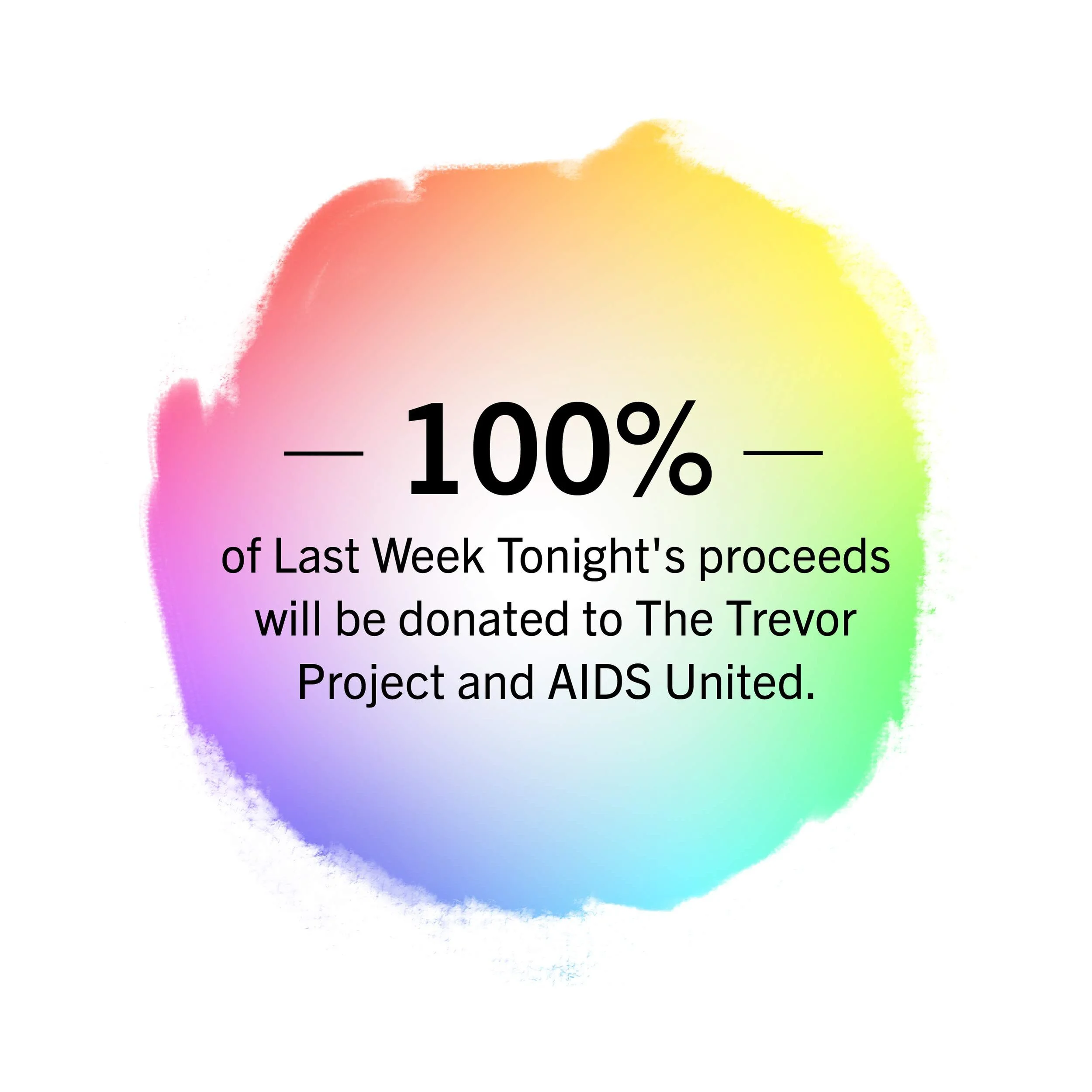 100% of Last Week Tonight’s proceeds will be donated to The Trevor Project and AIDS United.